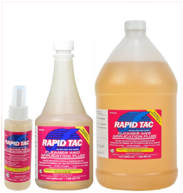 RAPIDTAC application fluid is a “super-wet” liquid which cleans the substrate surface and makes the application of even the largest of pressure sensitive markings simple, allowing the correct positioning before final placement.