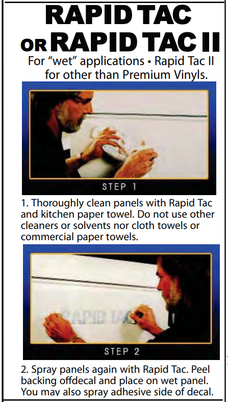 RAPIDTAC application fluid is a “super-wet” liquid which cleans the substrate surface and makes the application of even the largest of pressure sensitive markings simple, allowing the correct positioning before final placement.